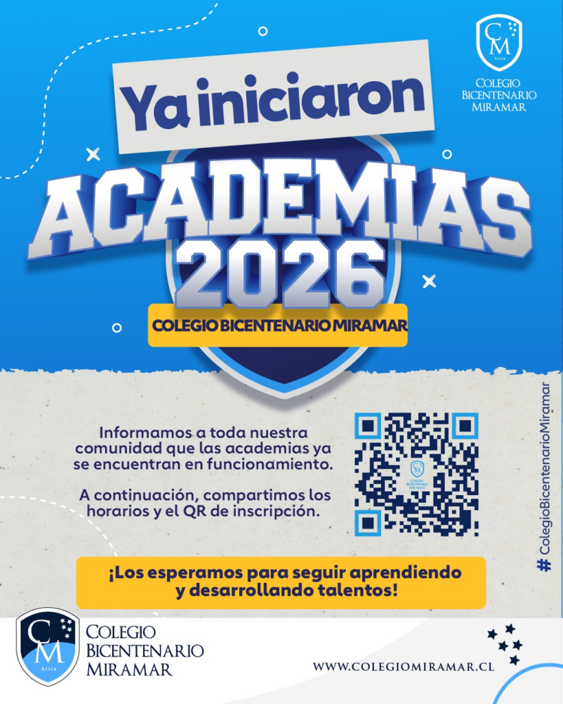 #ColegioBicentenarioMiramar#Academias2026#TalentoMiramar#ComunidadEducativa#Arica EducaciónConSentido AprenderYCrecer